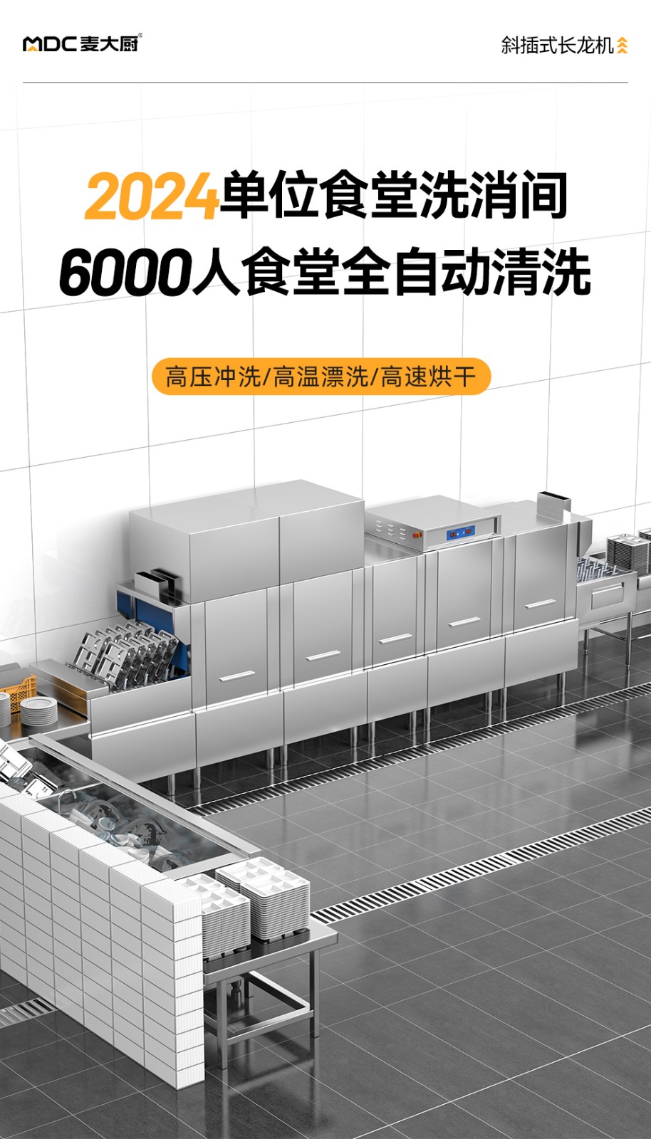 麥大廚豪華款3.8m斜插式單缸雙噴淋單烘洗碗機商用