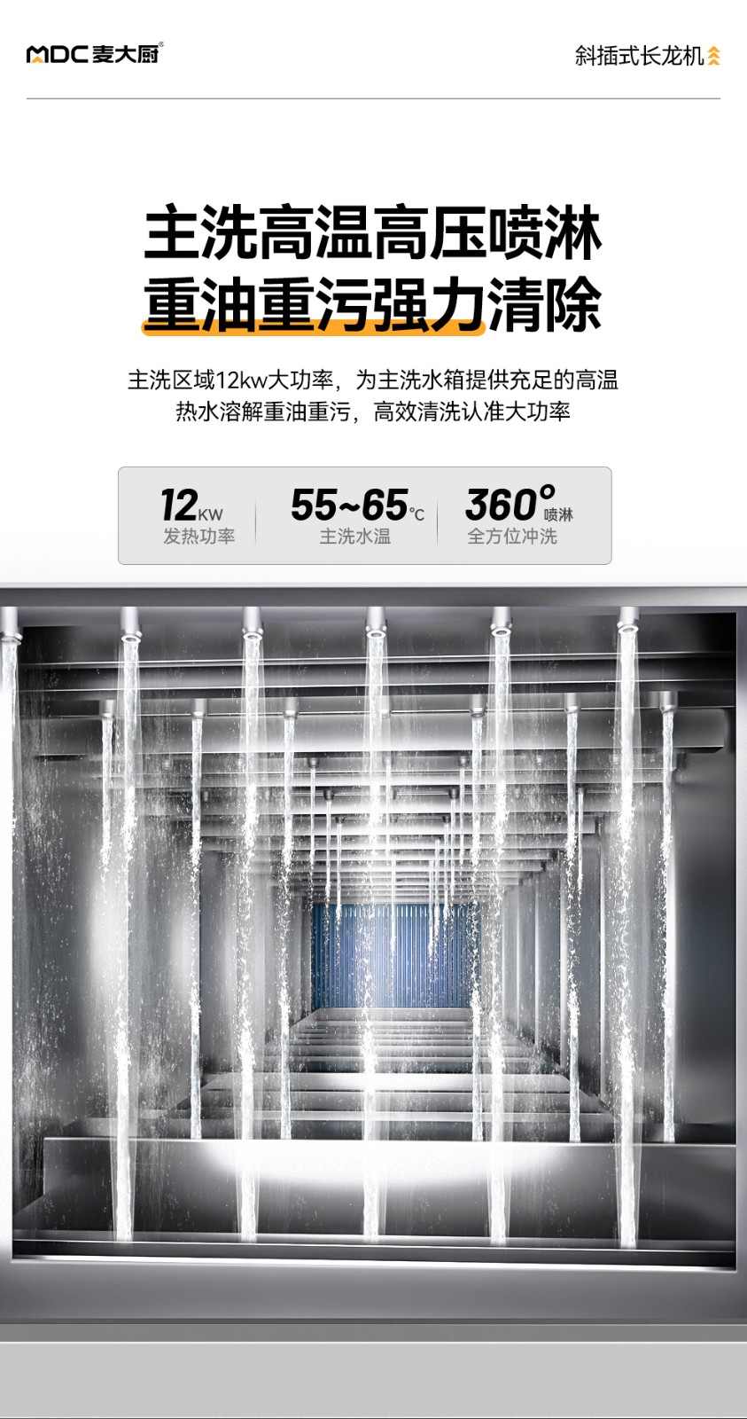 麥大廚豪華款3.8m斜插式雙缸雙噴淋洗碗機商用