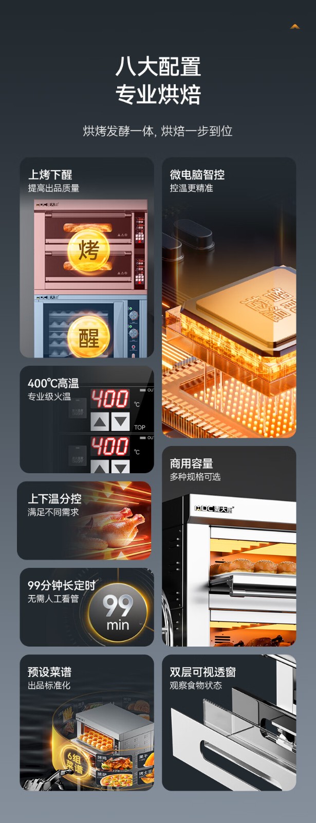 麥大廚升級款兩層兩盤商用烤箱發酵一體機9KW