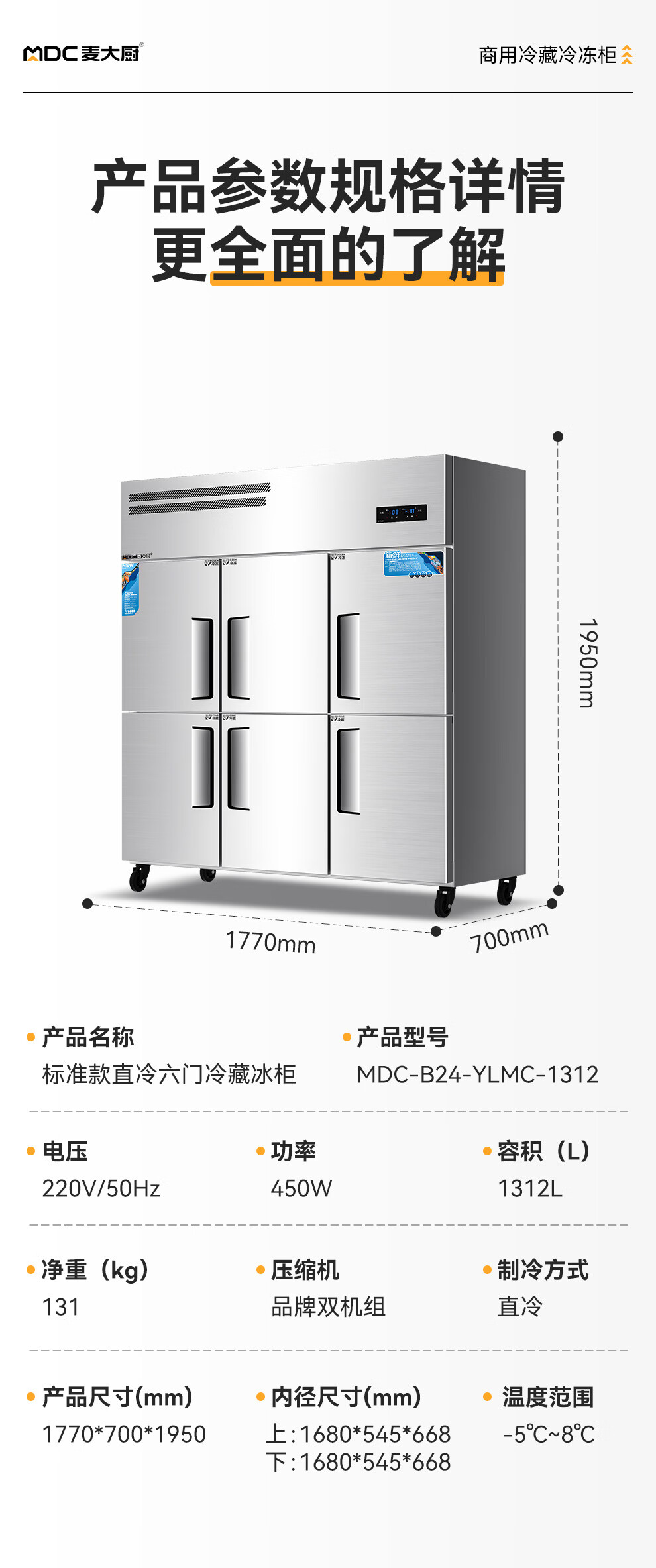 麥大廚標(biāo)準(zhǔn)款六門直冷立式冷藏冰柜