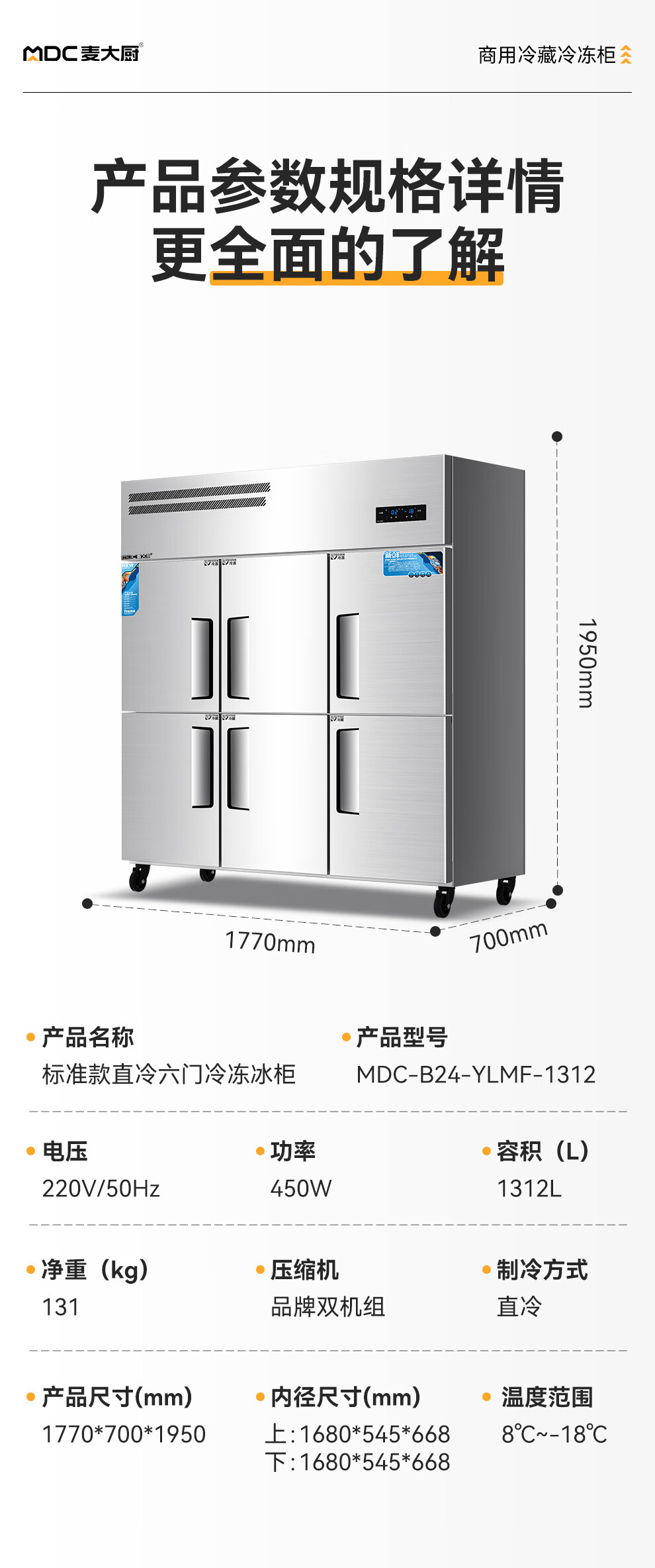 麥大廚標(biāo)準(zhǔn)款六門直冷立式冷凍冰柜