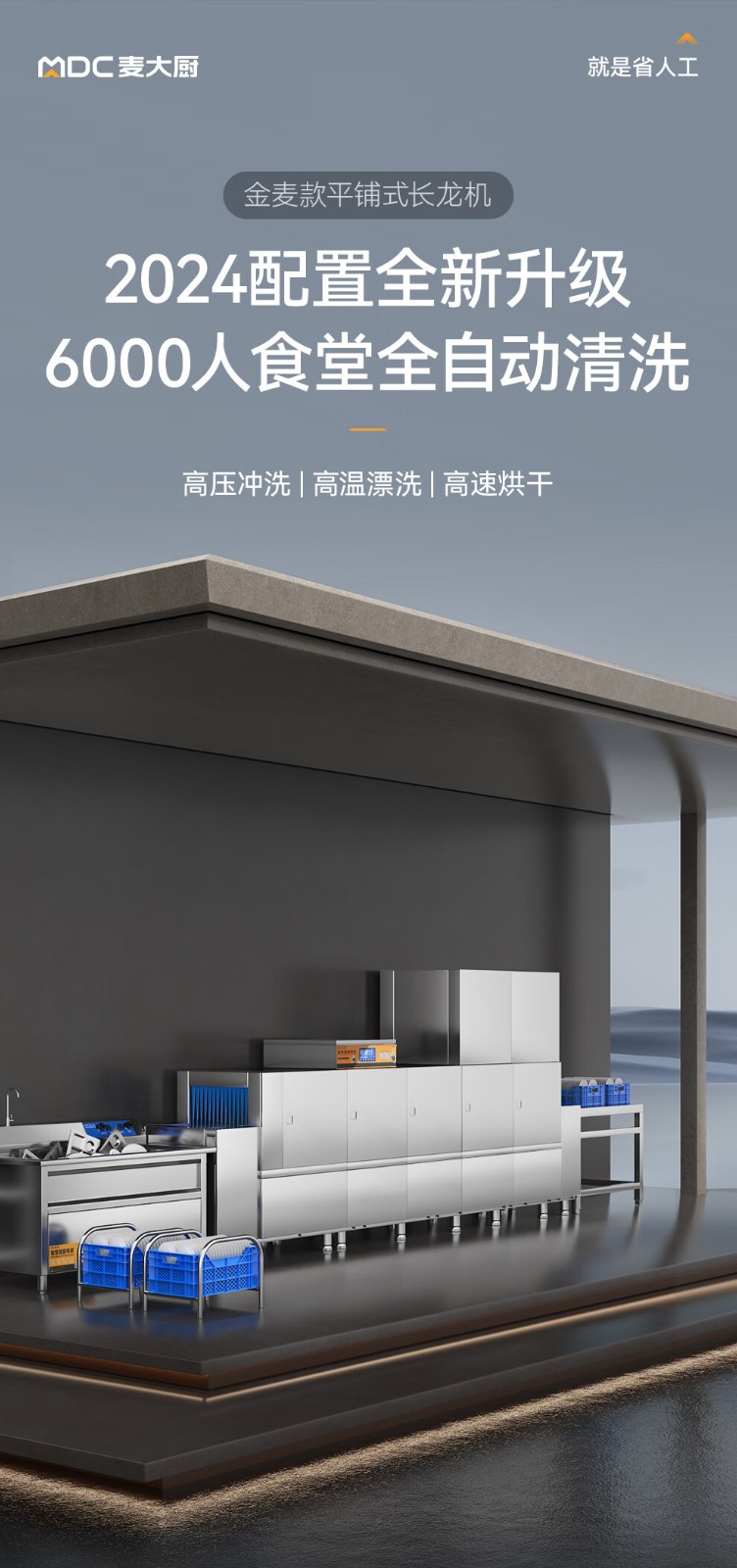 麥大廚金麥款平放式觸屏熱回收2.7m雙缸單噴洗碗機