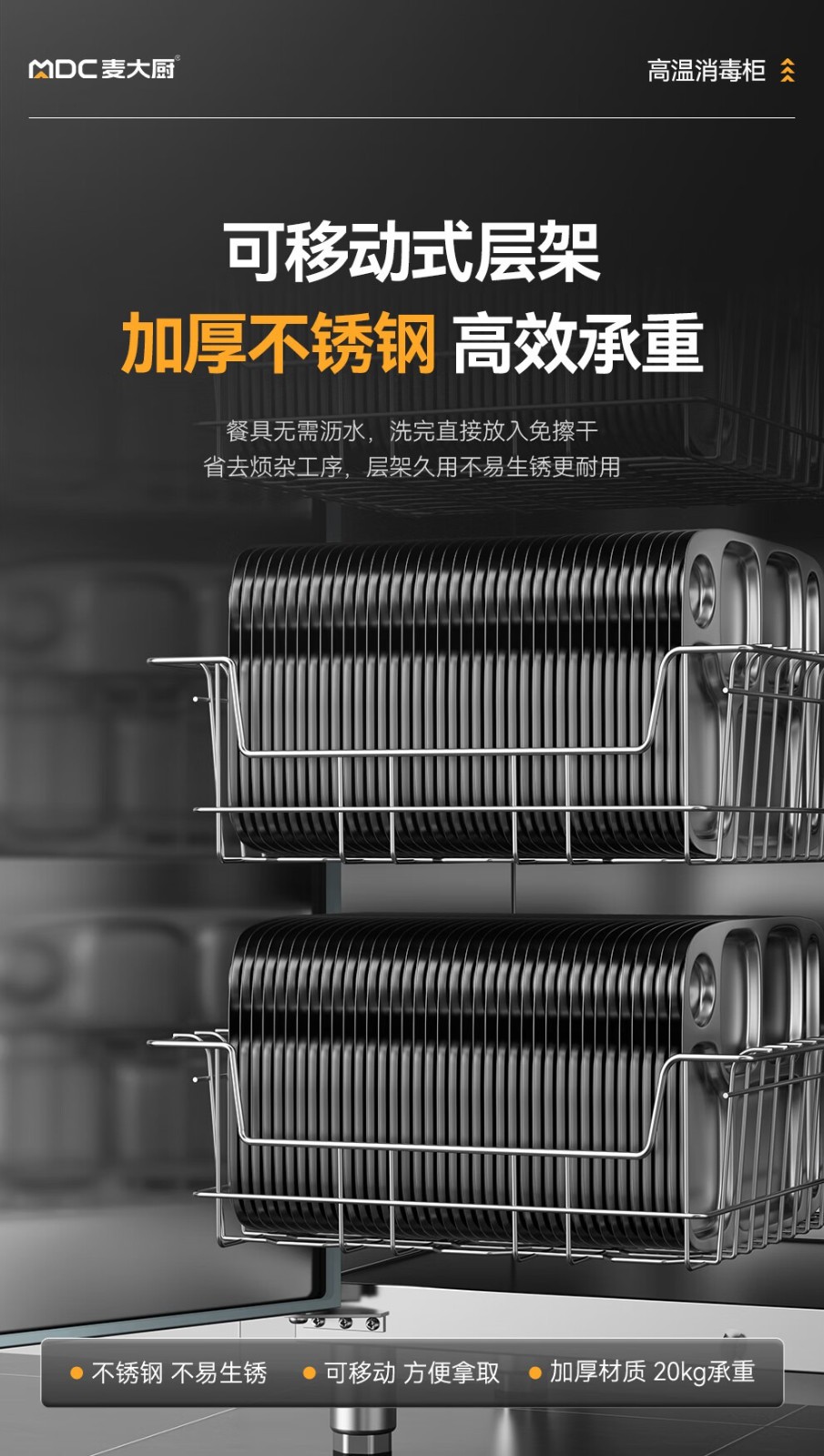 層架承重:20kg/層 - 更多MDC商用消毒柜規格咨詢在線客服
