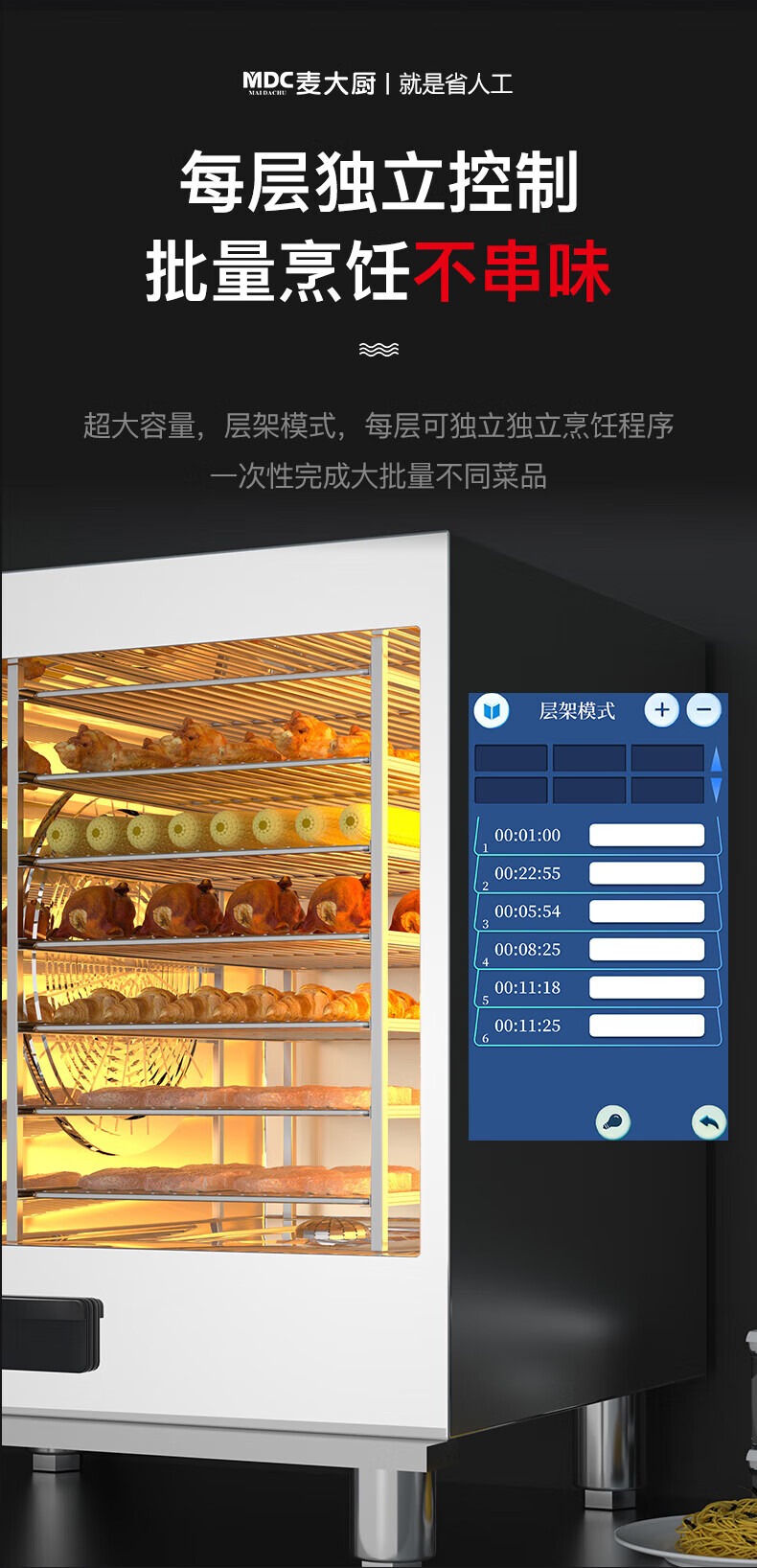 麥大廚380v尊享款12.3kw觸屏式六層萬能蒸烤箱