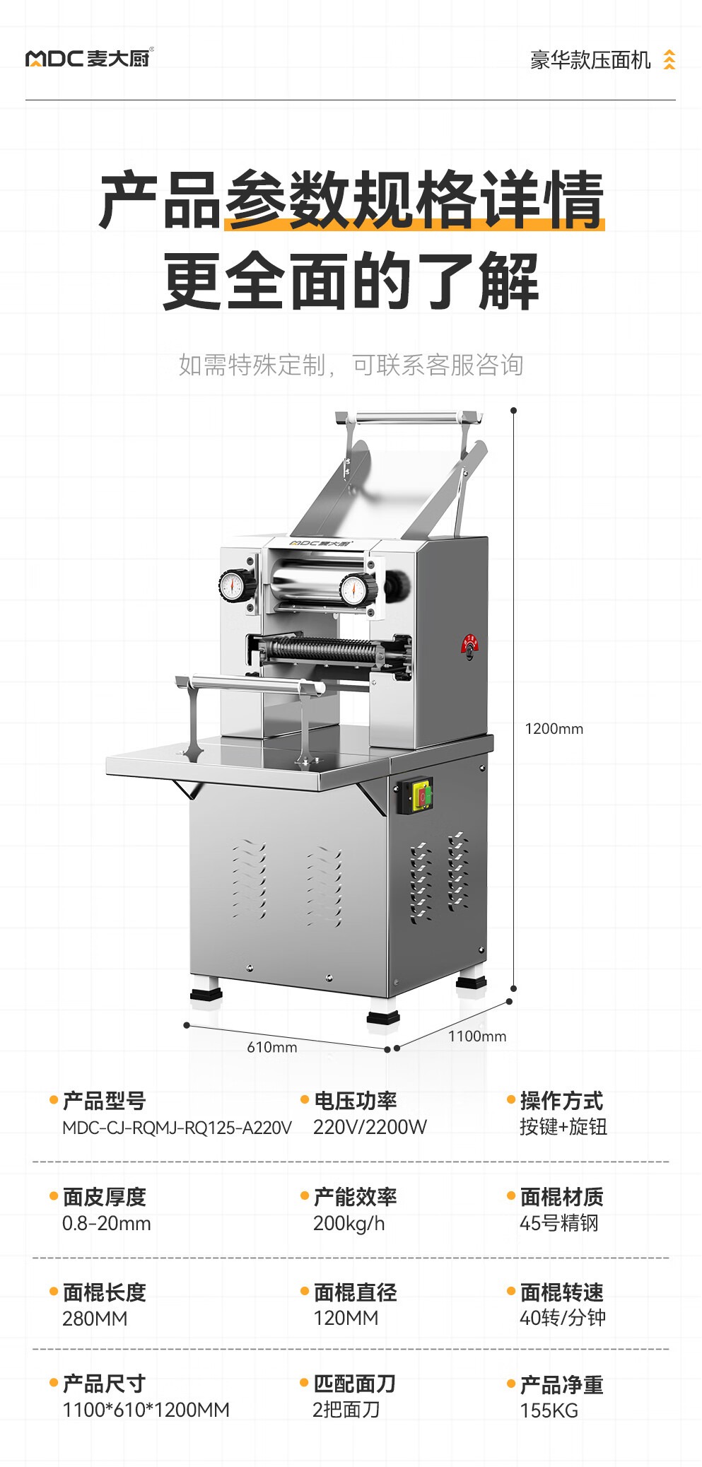 麥大廚大型揉切面機商用面皮軋面機自動壓面機220V 100-120KG[豪華款]