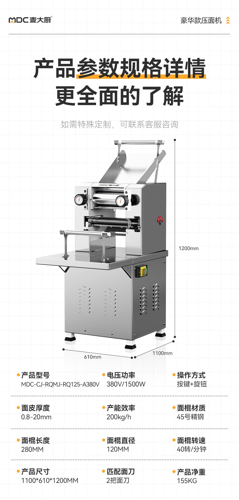 - 更多MDC商用壓面機規格咨詢在線客服