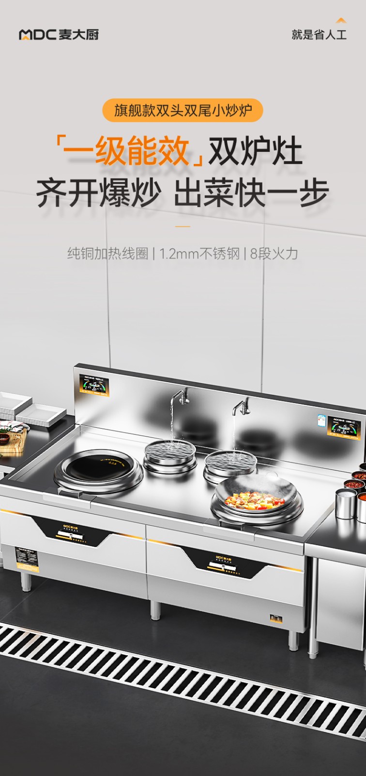 MDC雙頭小炒灶旗艦款雙頭雙尾小炒灶15KW